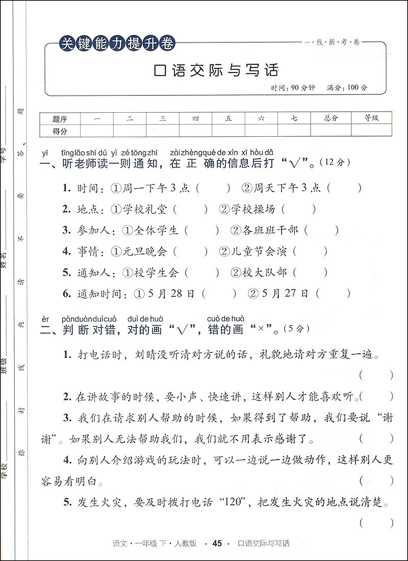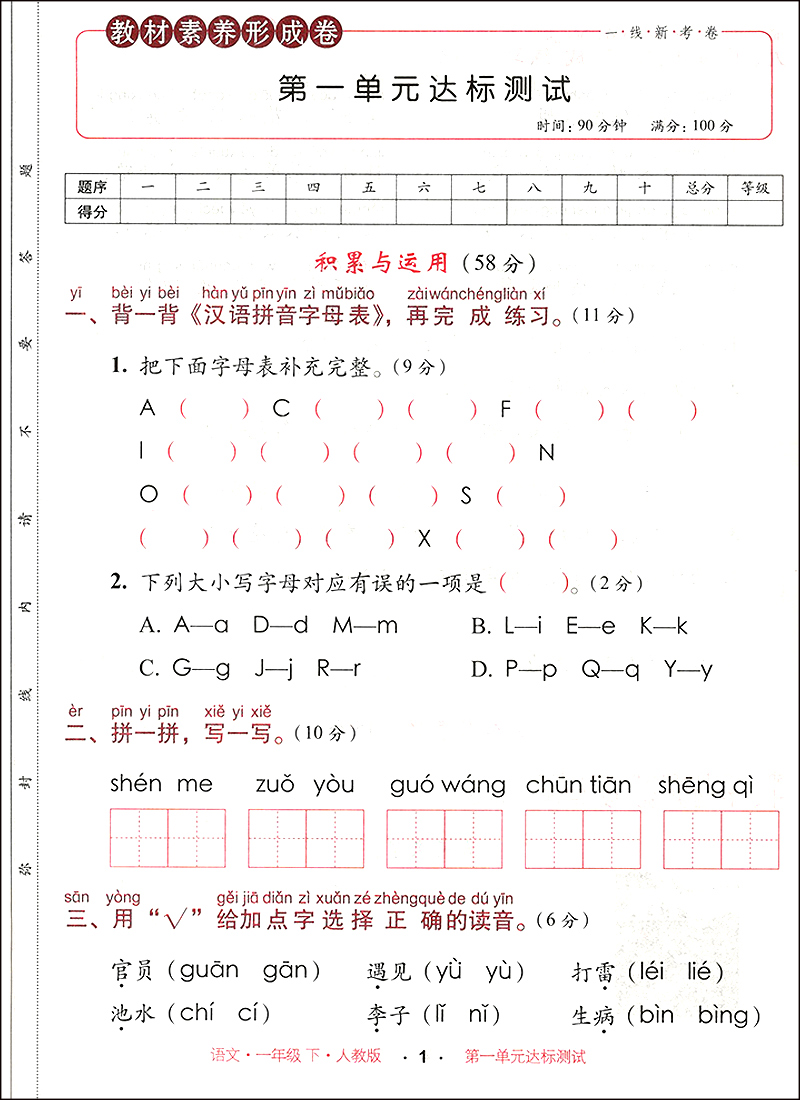 首页> 小学教辅> 一年级> 语文> 小学素养新考卷一年级下册语文人教版
