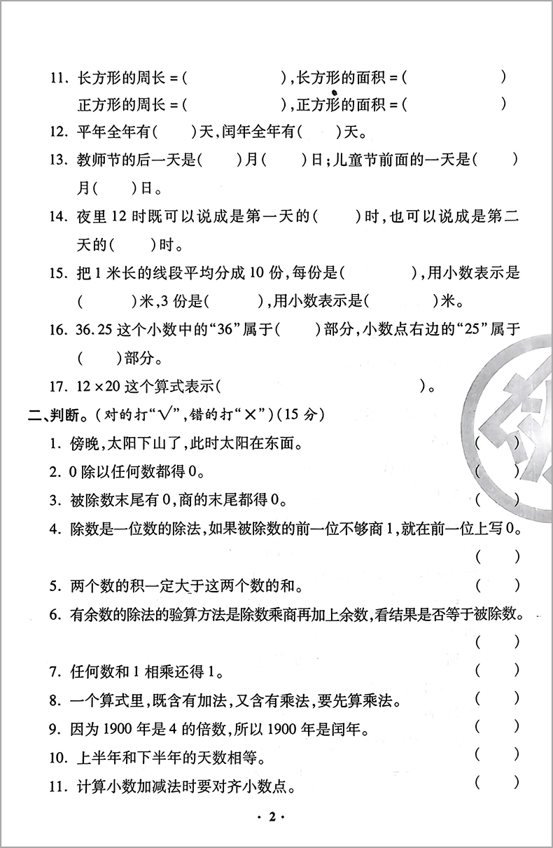 首页> 小学教辅> 三年级> 数学> 期末极限挑战100分 三年级下数学 人教版