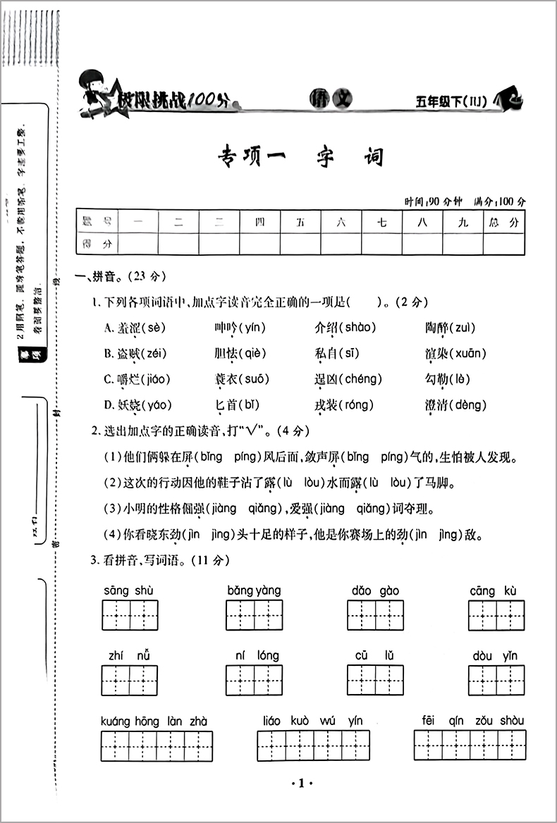 期末极限挑战100分 五年级下语文 部编版