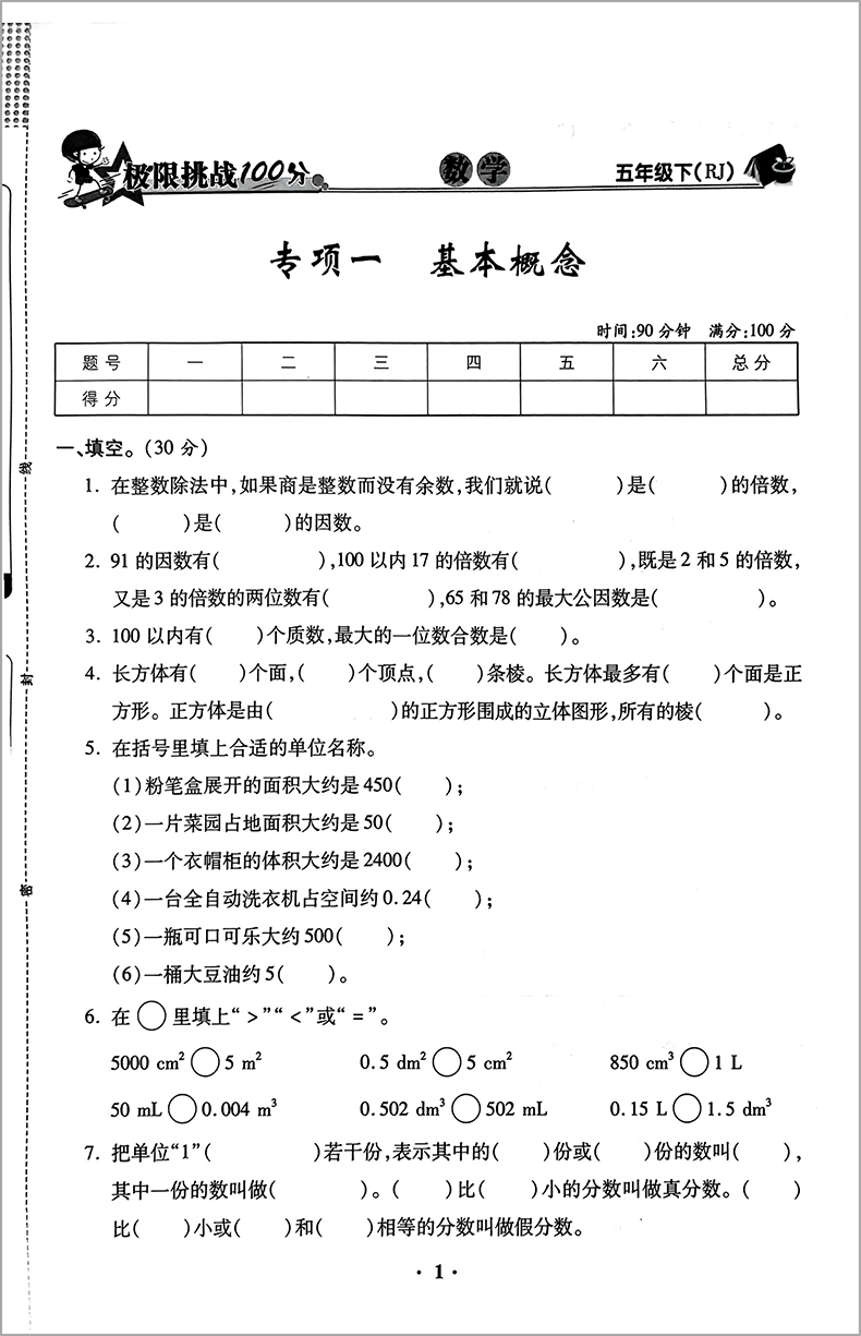 首页> 小学教辅> 五年级> 数学> 期末极限挑战100分 五年级下数学 人教版
