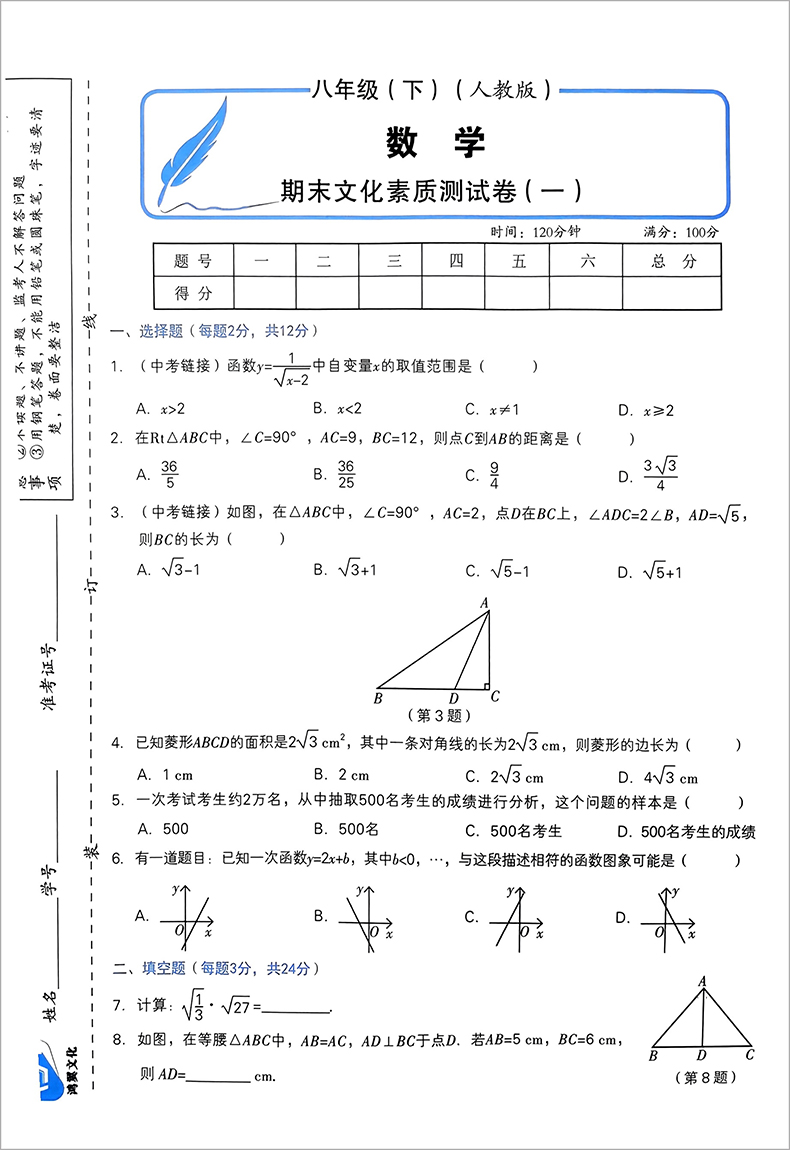 完美期末一遍过 数学 初中八年级下 人教版