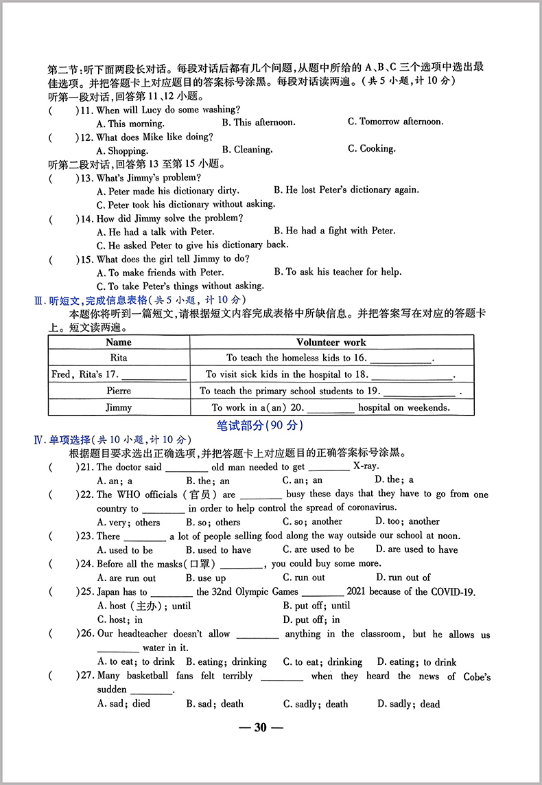 考前冲刺 期末名校试题必刷 八年级 英语下