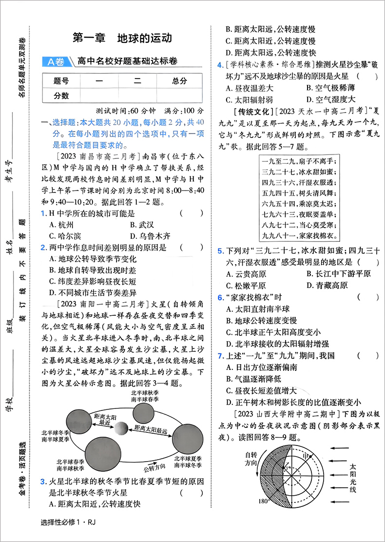 天星教育2024金考卷 名师名题 单元双测卷 高中地理选择性必修1 人教版