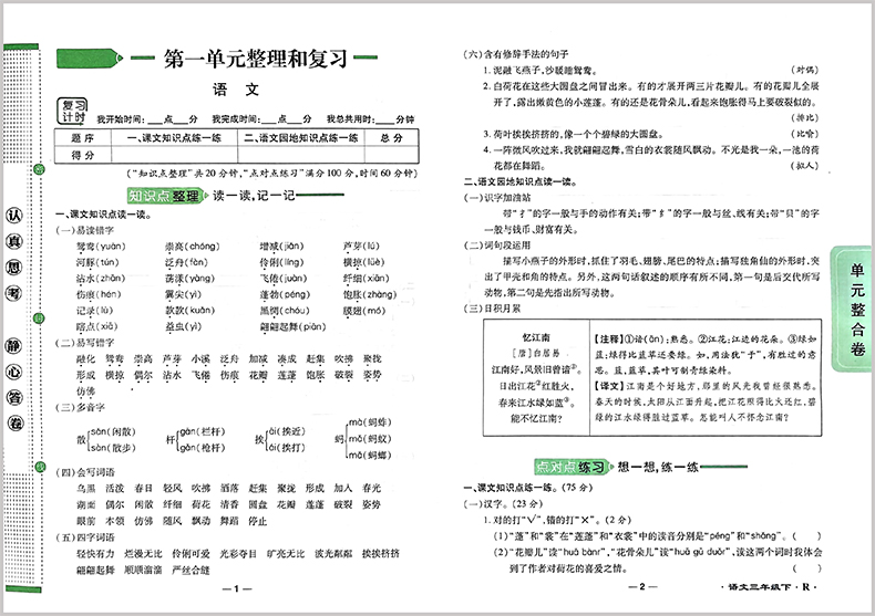 跳跳熊预习 一线调研 单元整合卷 语文三年级下 人教版