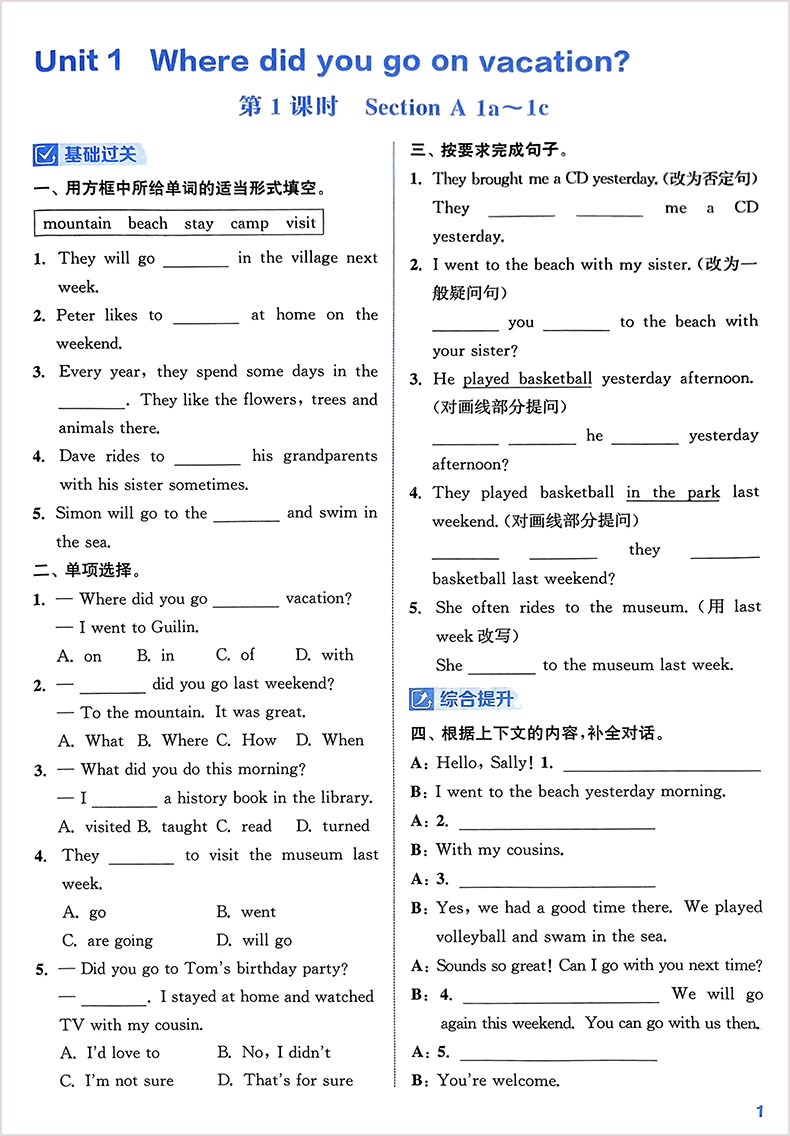 首页> 初中教辅> 八年级> 英语> 课时作业本 人教版八年级英语上