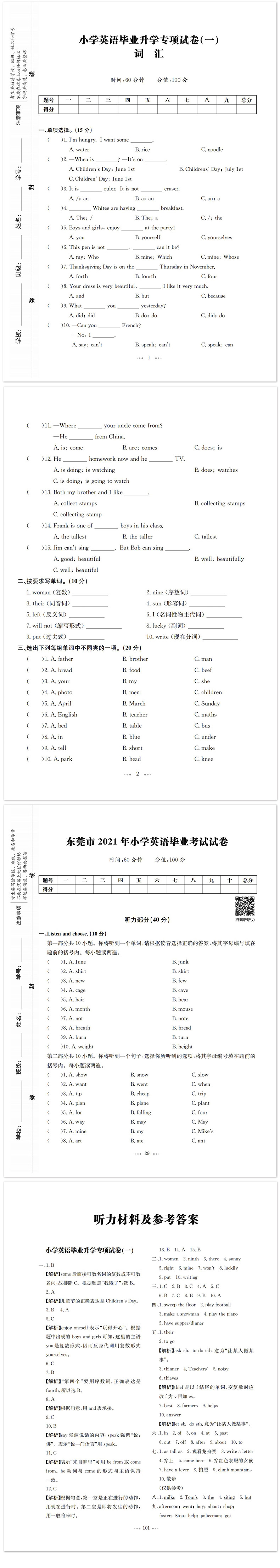 2022版一本 小学毕业升学考卷大集结英语